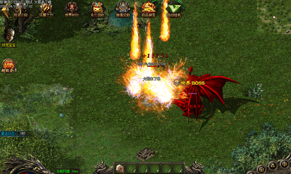 上线 送自动捡物 超强战宠 直接开撸 无强制消费 白嫖通关。